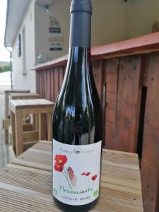 Couleur rouge intense rubis, composé de Marselan, merlot et une pointe de syrah située à St Gilles (gard – 30)