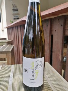 Un habillage simple car l’emblème des Catalans c’est la Mule. Et Vieille car ce sont des vieilles vignes. Une robe or rose incroyable. Un nez explosif de pêche blanche. Une bouche entière et une finale fraiche et acidulée.